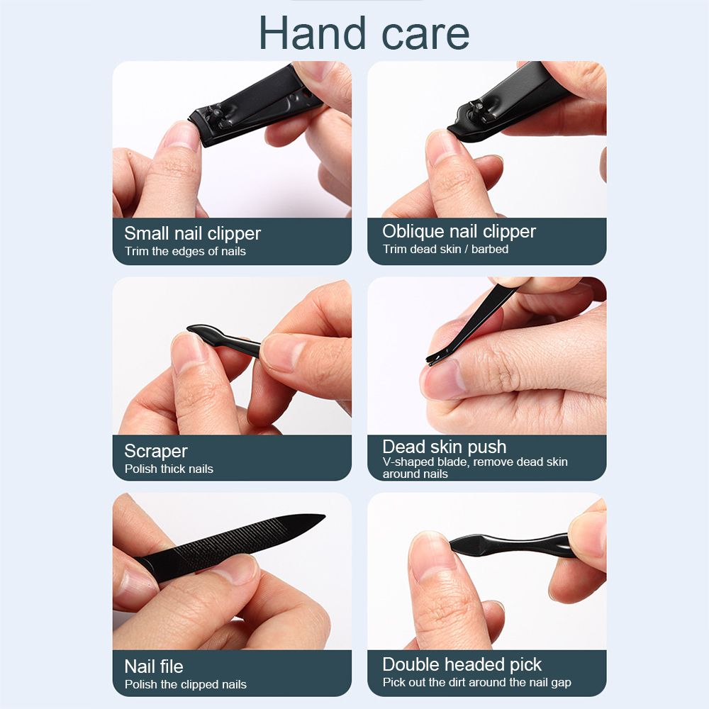 Multifunctional 16 pieces combination to meet your daily grooming deeds, including hand care, facial care, foot care.