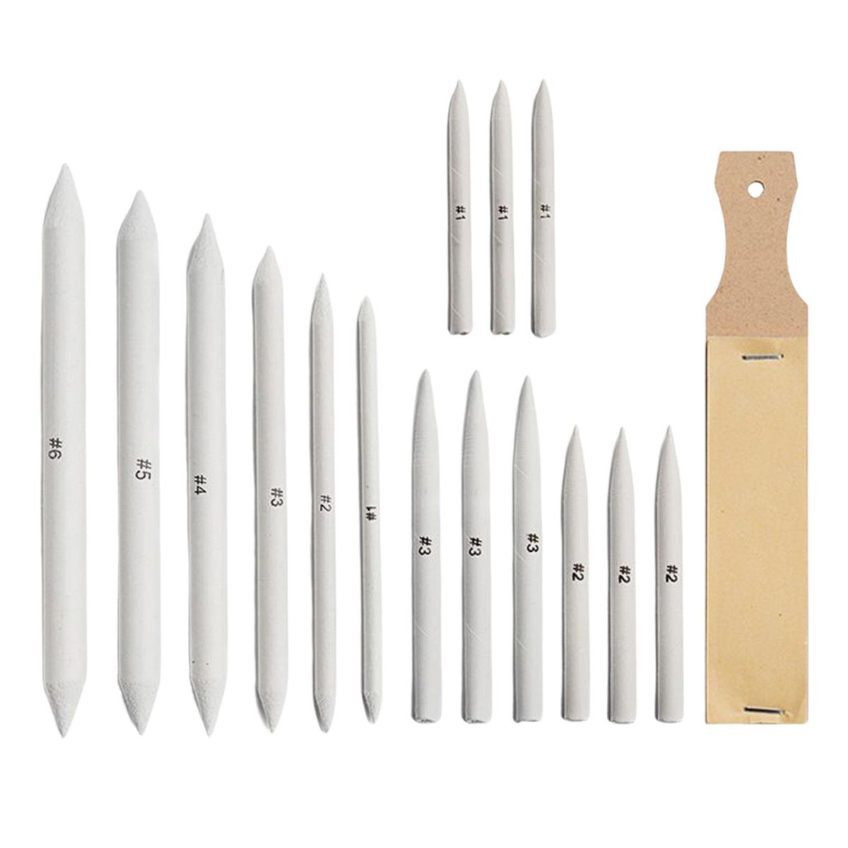 16pcs Sketch Drawing Set: 15 mixed stumps, 1 Sharpening tool sanding paper.