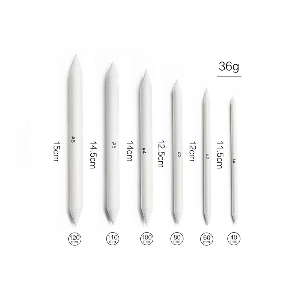 sanding paper Tool: 15.8cmx3cm/6.22inchx1.18inchBlending Stumps:#1 Length: 6.3cm, and 11.5cm#2 Length: 8.5cm, and 12cm#3 Length: 9.3cm, and 12.5cm#4 Length: 14cm#5 Length: 14.5cm#6 Length: 15cm