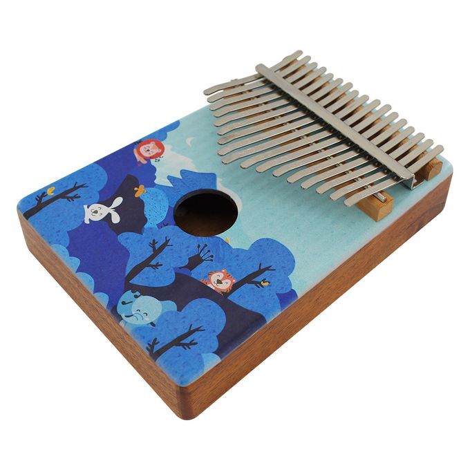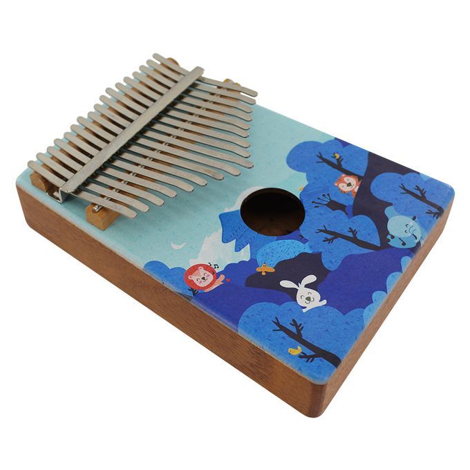 17-key wooden thumb piano with beautiful colored drawing on the surface, exquisite workmanship.