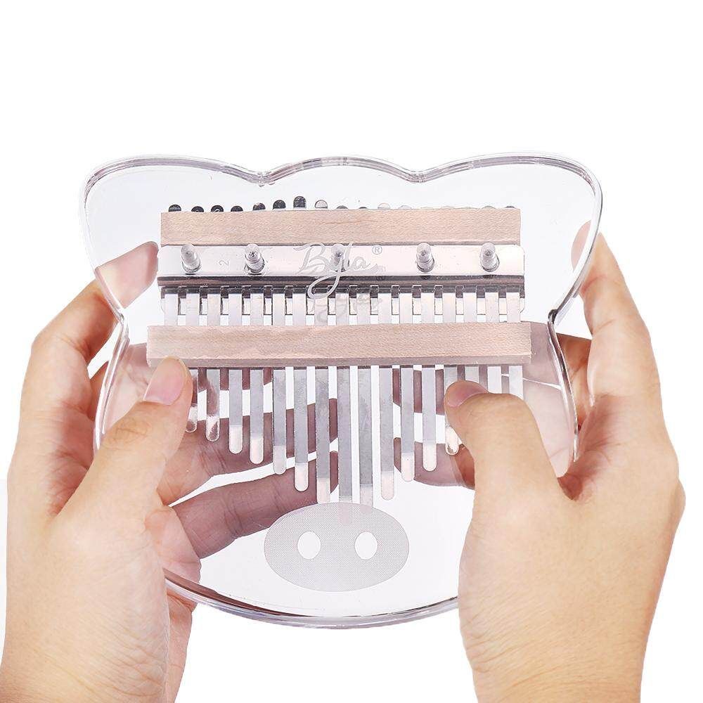 kalimbas metal keys are mounted on a crystal acrylic body that acts as the resonating chamber.