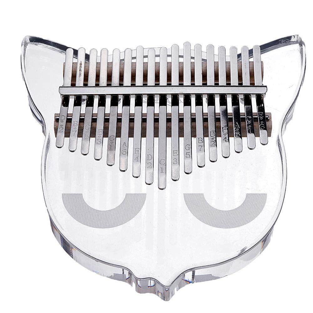 kalimbas metal keys are mounted on a crystal acrylic body that acts as the resonating chamber.