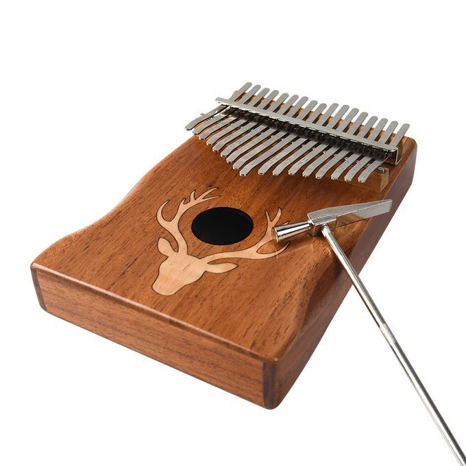 The 17 keys kalimba is portable to play splendid music, dreamy elk pattern, maple insaid. Also it comes with hammer, fingertip protectors, tone sticker, instruction and other tools, very suitable for kalimba beginners.