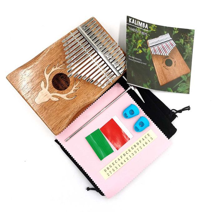 1 x Kalimba,1 x Hammer,2 x Fingertip Protectors,2 x Stickers,1 x Scale Table,1 x Instruction,1 x Cloth,1 x Bag,