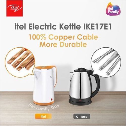 Itel Electric Kettle/Jug is specially made for ease and convenience. Its 1700 wattage makes sure it boils water faster than a gas stove, microwave, and ordinary stove. Its cable is 100% copper which ensures it is protected against overheating. The body of the kettle has a double housing design. The outer part is made of plastic while the inner is made of food-grade stainless steel. This ensures that even if your hand or any part of your body touches the kettle while the content in it is still hot, it doesn't hurt you.