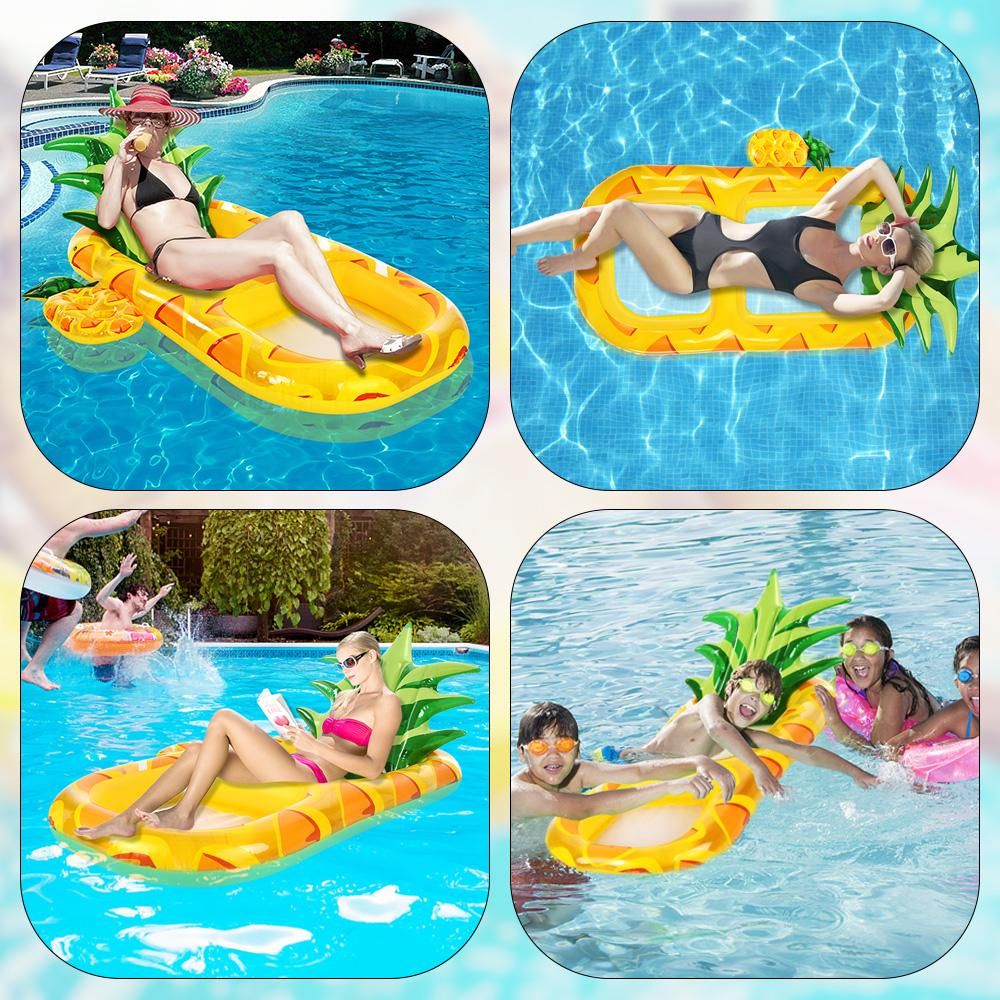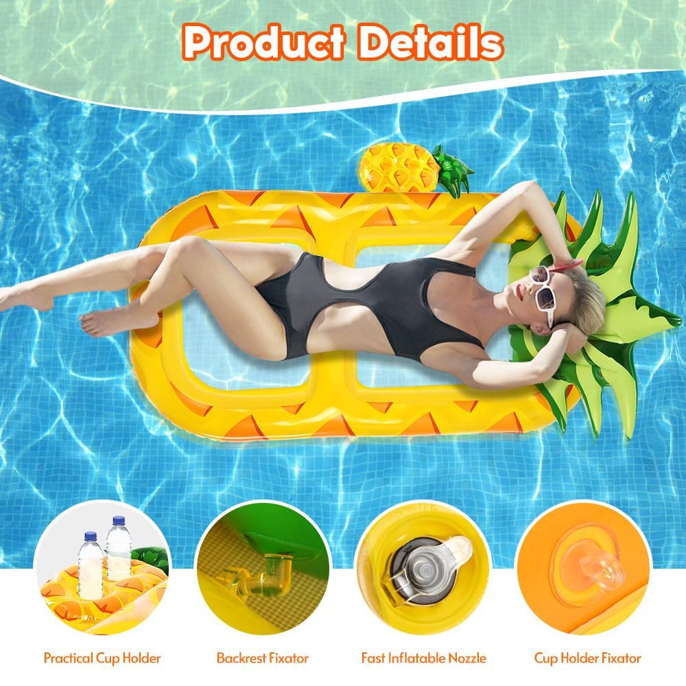 Buy 170 * 88cm/ 67 * 35in Inflatable Lounging Swimming Pool Float Pineapple Floating Lounge Chair Floating Hammock with Mesh Bottom Backrest Cup Holders for Adults in Nigeria