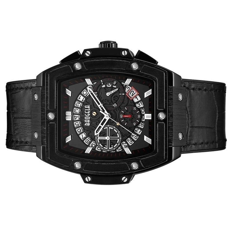 1703 Wine Barrel Type Multifunctional Mens Sports Quartz Watch( Black Shell Black Face)