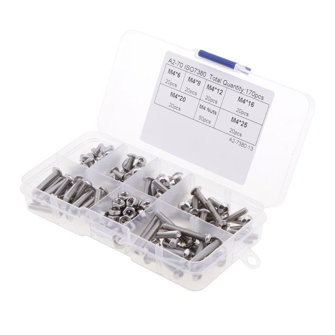 170Pcs M4 Stainless Steel Button Head Socket Screw and Nuts.