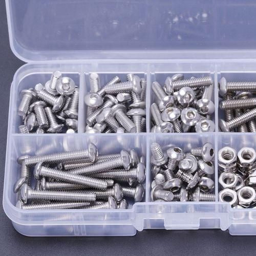 SODIAL(R) 170Pcs M4 Stainless Steel Hex Drive Button Head Socket Cap Bolts Screws Nuts Assortment Kit (M4)