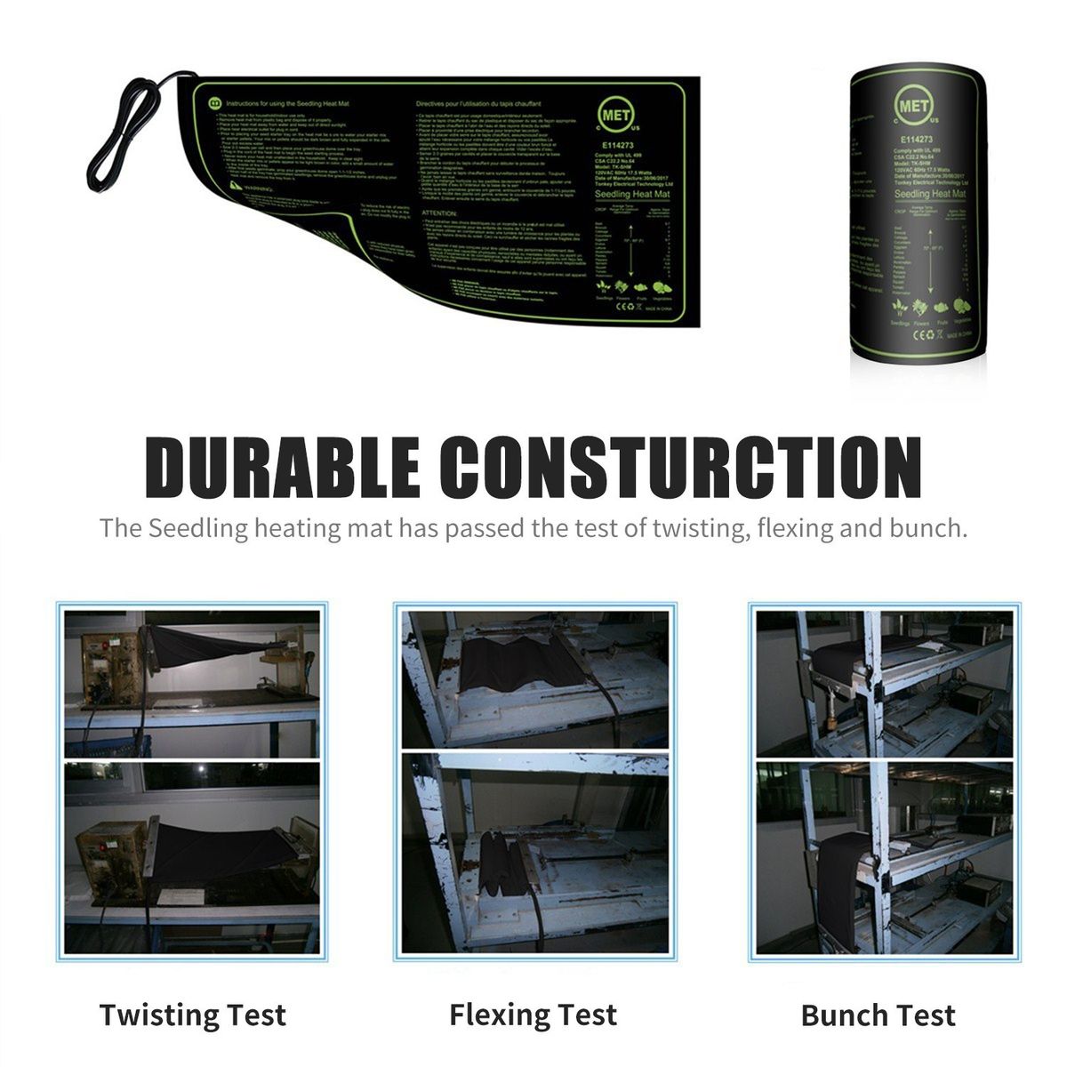 [Durable Consturction]The Seedling heating mat has passed the test of twisting, flexing and bunch, and with stronger heating wire and thicker multi-layer construction.