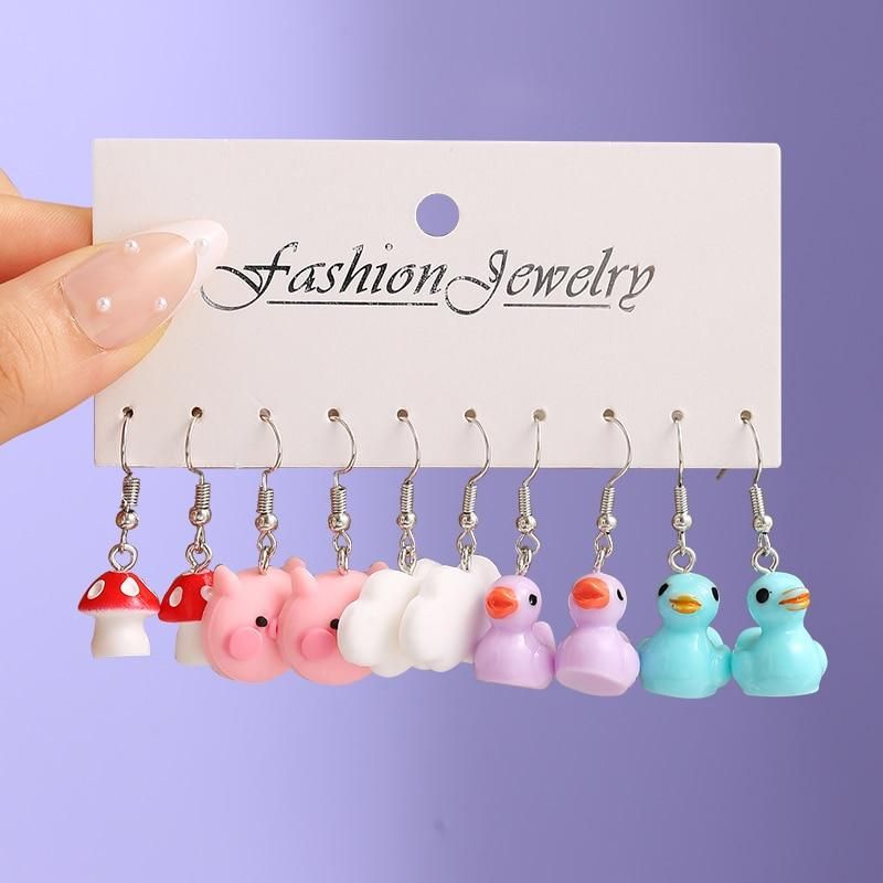 Buy 17KM Cute Mushroom Pig Dangle Earrings Set Animals Frog Duck Bear Earrings for Women Children Colorful Cartoon Jewelry Gifts New in Nigeria