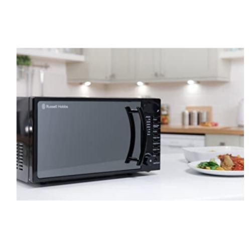 The Russell Hobbs RHM1714B microwave has a sleek and stylish design, boasting an attractive mirror door finish. This attractive appliance is simple and easy to use with its 700 watts of microwave power, providing you quick and convenient cooking in your home. pre-programmed auto cook menus, such as pizza (reheat), fish, and popcorn, allow you to cook all your favourite foods at the push of a button. What's more, there's automatic defrost settings meaning all you have to do is input the weight of the food, and the microwave selects the ideal defrost time, saving you time and effort. Moreover, 5 microwave power levels enable tailoring of your cooking experience. additional features include a handy digital clock and count-down timer, and for added peace of mind, The RHM1714B comes with a child safety lock option, preventing young children from being able to open the microwave door.
