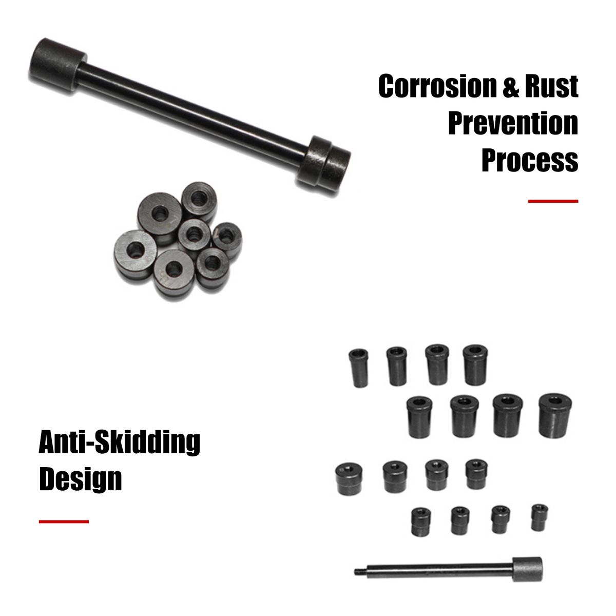 Precision manufactured steel bushes with chemically blacked finish.