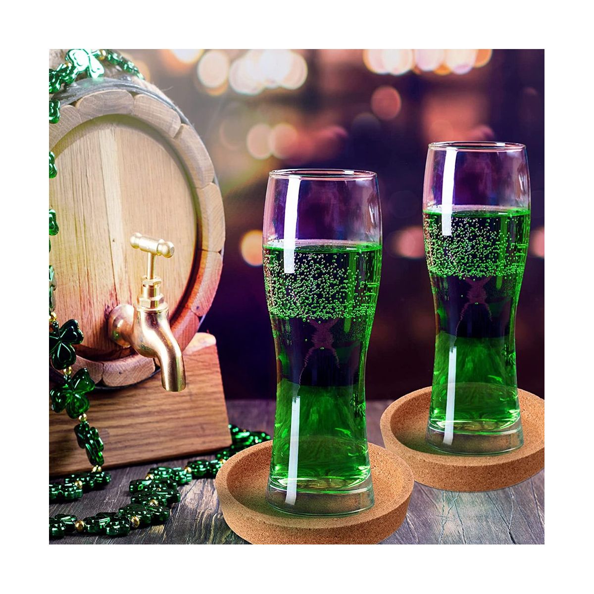 The cork coasters are made of cork which is very strong beautiful and thick enough The perfect material for absorbent and flexible mats on the bottom of glassware Works great on iced drinks and chilled water absorbs water or heats up quickly instantly
