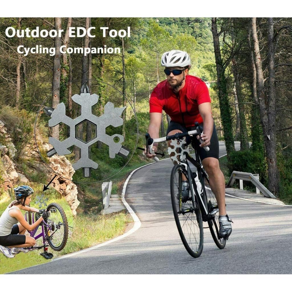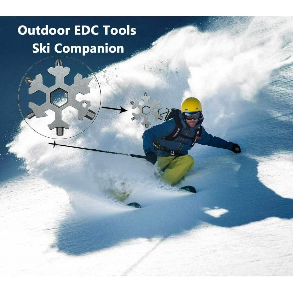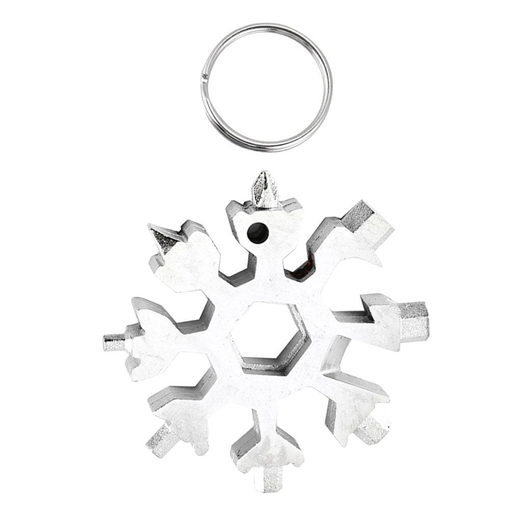 Made of stainless steel, Unique Snowflake-Shaped DesignPortable and lightweight, used to attach to keychains or backpacksMulti-use, can be used to open the bottle, turn the screw, fix snowboarding , bicycle, toys etcUse as flat screwdriver, cross screwdriver, socket wrench ,etcGreat for outdoor sports, camping, Hiking, boarding, adventure, travel, and more.