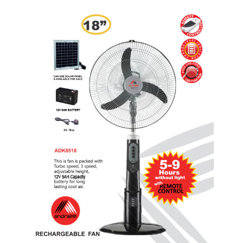 Buy 18-inch Rechargeable Stand Fan With Usb Port ADK-8518 in Nigeria