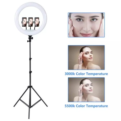 Ringlight with 2.1M Stand and Phone Holder *This 26/30/33/36cm ring light comes with a metal stand and cell phone holder,the 360 degree rotatable circular cloud platform can be free to adjust to any angle.