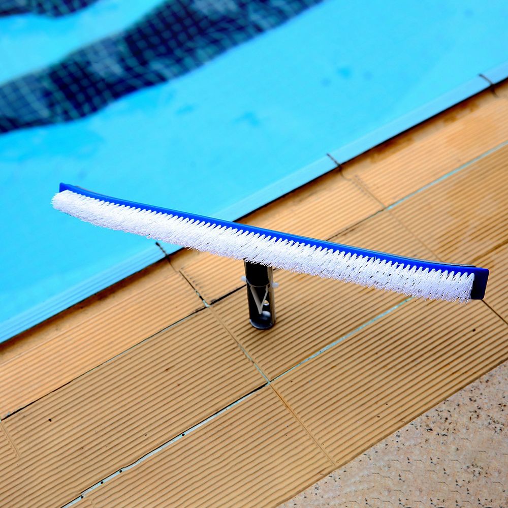 Pool brush: reinforced aluminum back aluminum handle equipped with expansion bar material corrosion resistant