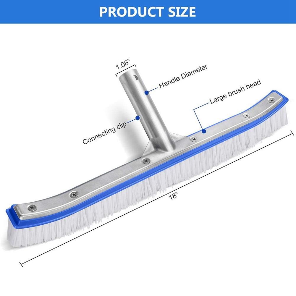 FAST CLEANING: Measuring about 18-inch long, the pool brush can cover a larger cleaning area. And this pool brush helps you to clean whatever area faster, saving both your time and effort. Besides, it has curved ends to sweep those hard-to-reach places.