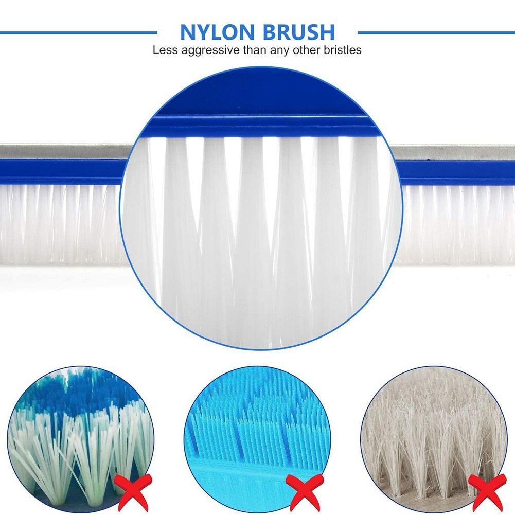 NYLON BRISTLES: Features high-density nylon bristles to give a gentle contact without scratching your swimming pool. This pool replacement brush is great for the inner wall or bottom cleanup, and it helps to remove tough stains, grimes and dirt.