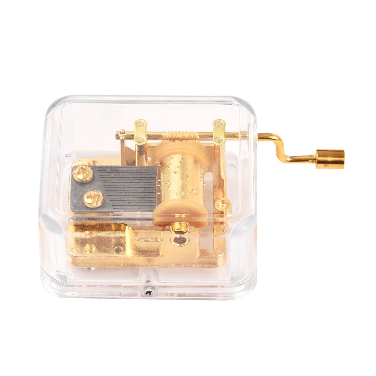 Transparent hand-cranked music box is funny and can be selected as a perfect gift for people who you love and care for. The main part can be unscrewed from the case for easily customizing your own music box.