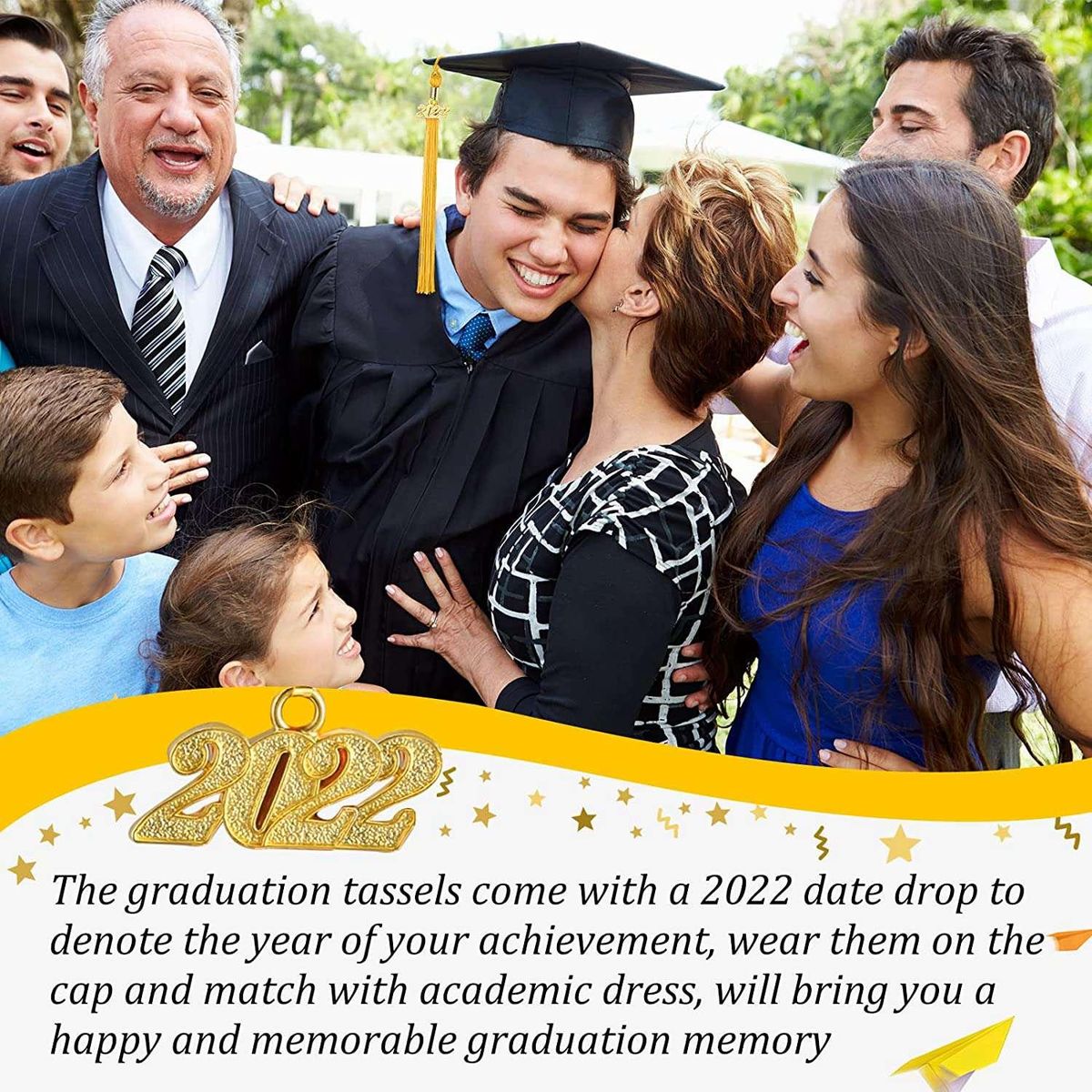 Decorative souvenir: our academic graduation charms with 2022 year pendants are beautiful decoration choices for your graduation ceremonies and activities; The tassels come with a date drop to denote the year of your achievement, wear them on the cap and match with academic dress, will show a sense of liveliness and elegance, bring you a happy and memorable graduation memory