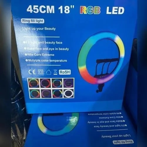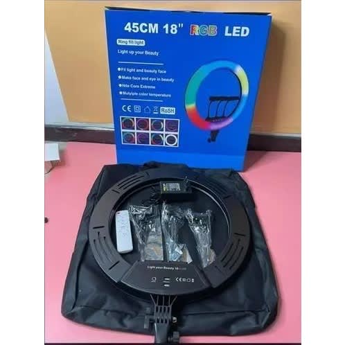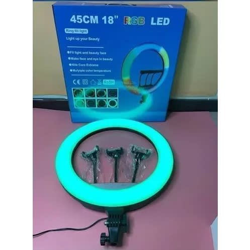 Buy 18" Rgb Ring Light 56cm Multicolors + Tripod Stand + Remote + Bag + 3 Phone Stands in Nigeria
