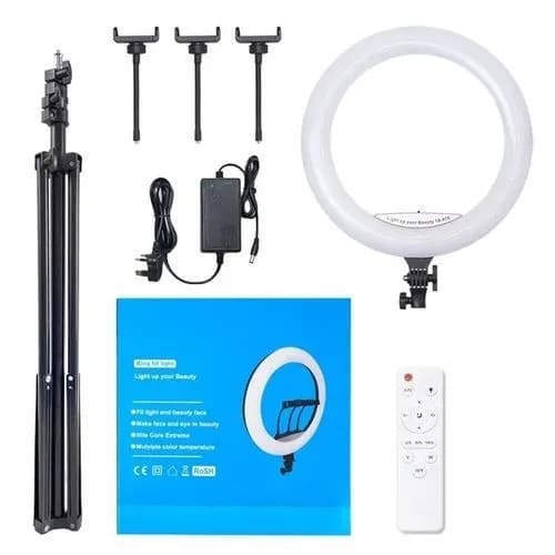 18 Inches Rgb Ring Light + 3 Phone Holders + Remote + Tripod Stand + Plug-in Wire + Bag