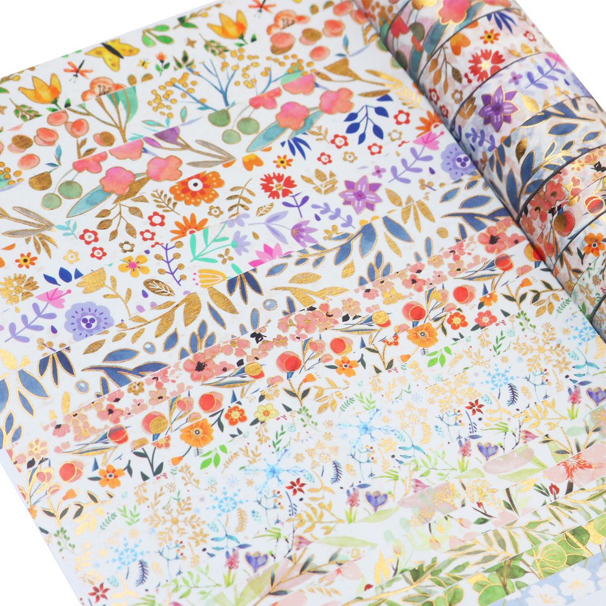 Floral washi tape set, total 18 rolls, include 6 rolls 15mm(0.59in) wide x 3 meters long(9.84ft), and 12 rolls 7.5mm(0.3in) wide x 3 meters long(9.84ft).