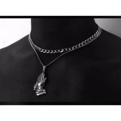 Buy 18" Stainless Steel Cuban Link Chain With Closed Hand Pendant - Silver in Nigeria