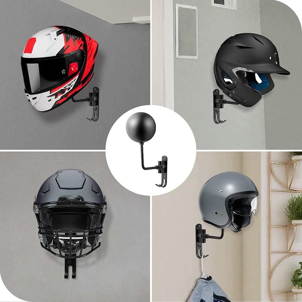 [Wide Use]Can store motorcycle helmets, bicycle helmets, baseball helmets, football helmets and hats, etc. Perfect for homes, garages, motorcycle shops, showrooms, offices or anywhere you need to hang.