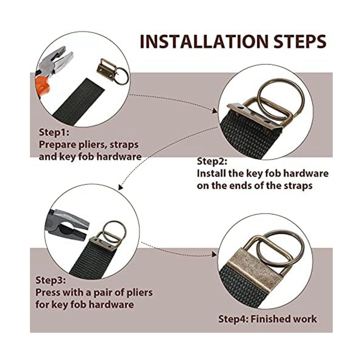 Easy to install: each key fob wristlet is equipped with a key ring, the tail of the clip has a curved portion inward, which can hold the webbing tightly; The tail clips are installed at both ends of the belt, and then pressed with tool tightly, so that the belt is clamped inside, then lock the keychains on both ends to the bag, and then you can easily carry your bag