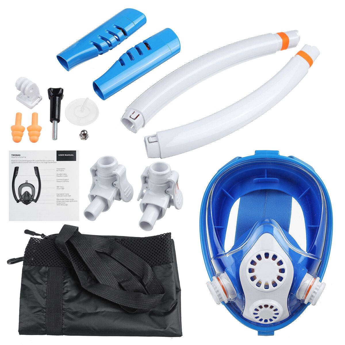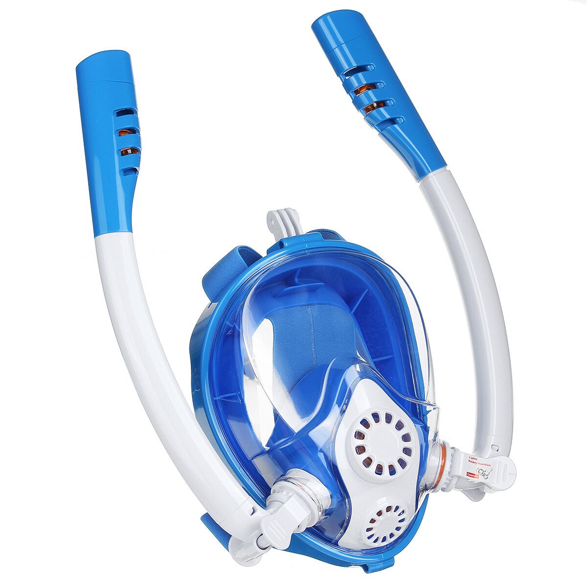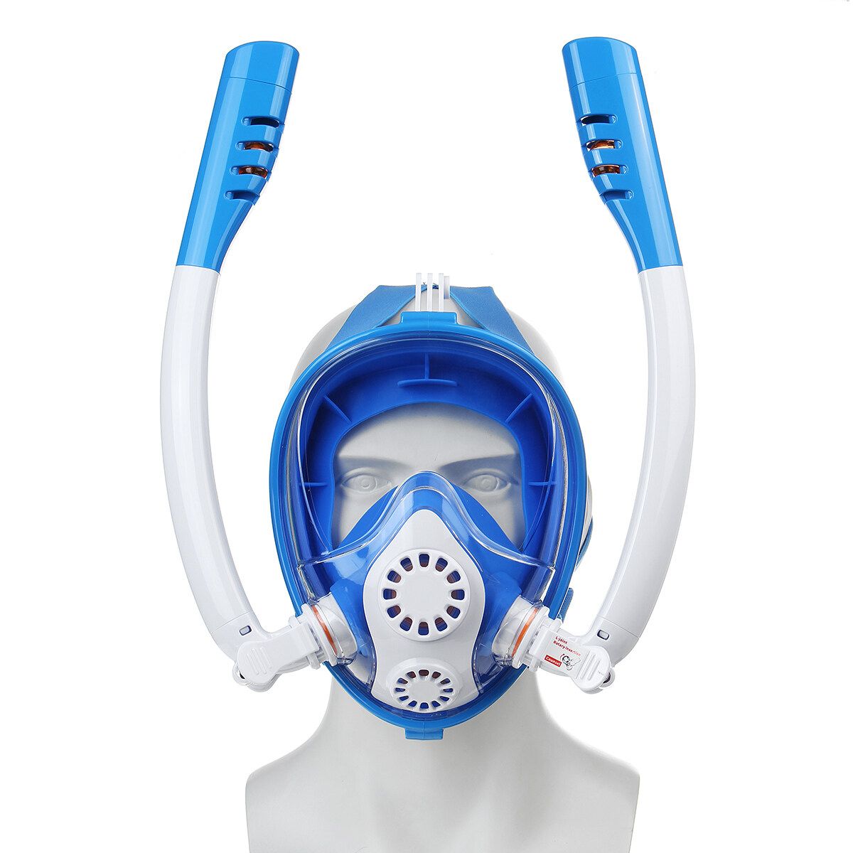 Features:* 180° WONDERFUL SEA VIEW: You will see more beautiful scenery than ever before. The well-designed and improved mirror gives you the best distortion-free visibility and maximum visibility.* GREATER SAFETY RESPIRATORY SYSTEM: The unidirectional (outer) circulation system has dual breathing features, this allows carbon dioxide to be mechanically isolated from the oxygen. The system is designed to allow free flowing oxygen to be inhaled via the 2 intake tubes which is separate from the exhaling chambers. This system prevents carbon dioxide from remaining in and entering the body to cause life threatening and accidents.* ANTI-FOGGING: Allow you to explore the underwater world in clarity.* LEAKAGE-PROOF: Our snorkeling uses non-toxic silicone which provides a tight waterproof sealing area. It has ergonomics of waterproof safety mechanism, smooth drainage and wear safety, in order to escort your snorkeling experience.* HIGH QUALITY: Made of premium PC and Food Grade Silicone, Non-toxic and environmentally friendly.