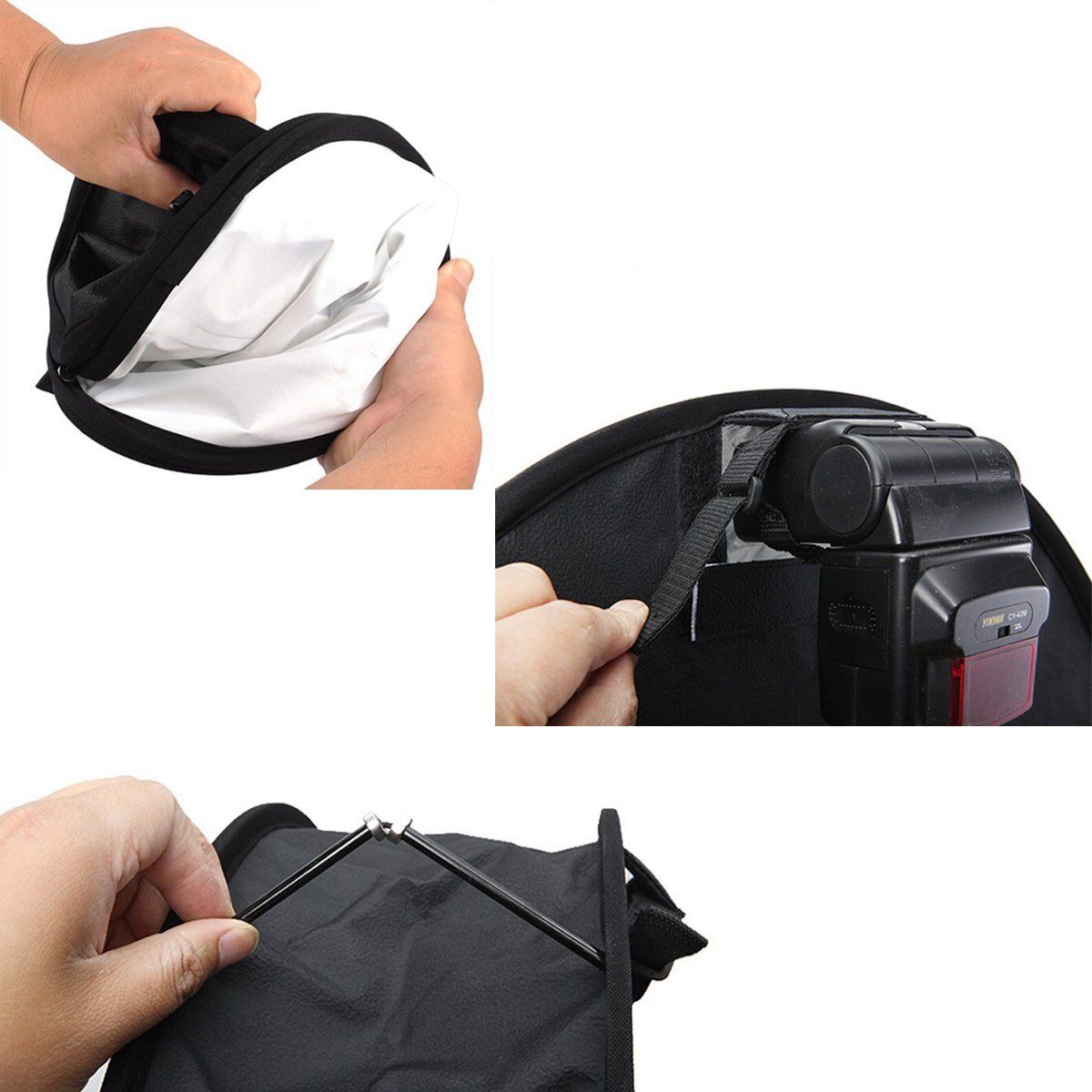 Comes with a thread for flash unit to fix and adjust width