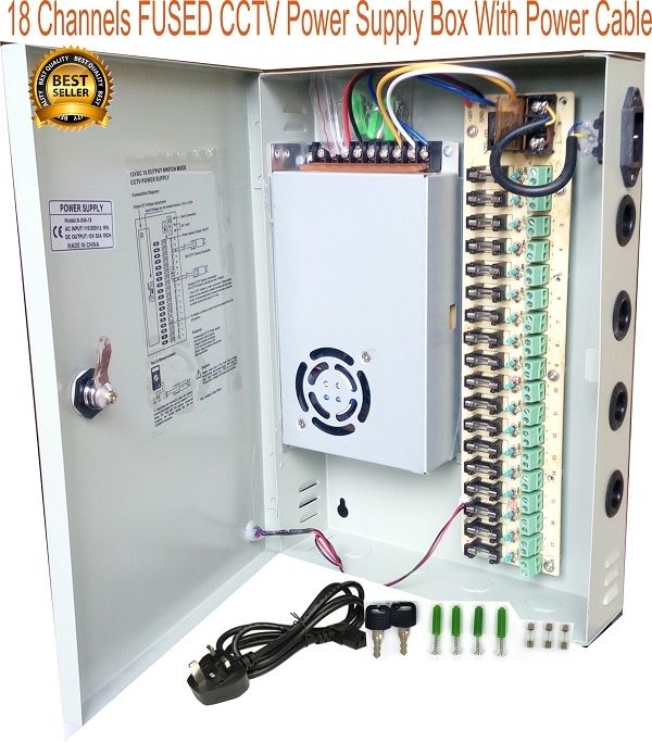 Channel Fused CCTV Power Supply Unit (CCTV Central Power) offers a more professional alternative to individual power adapters, for powering 16 CCTV cameras. Mounting flange design allows easy wall mounting