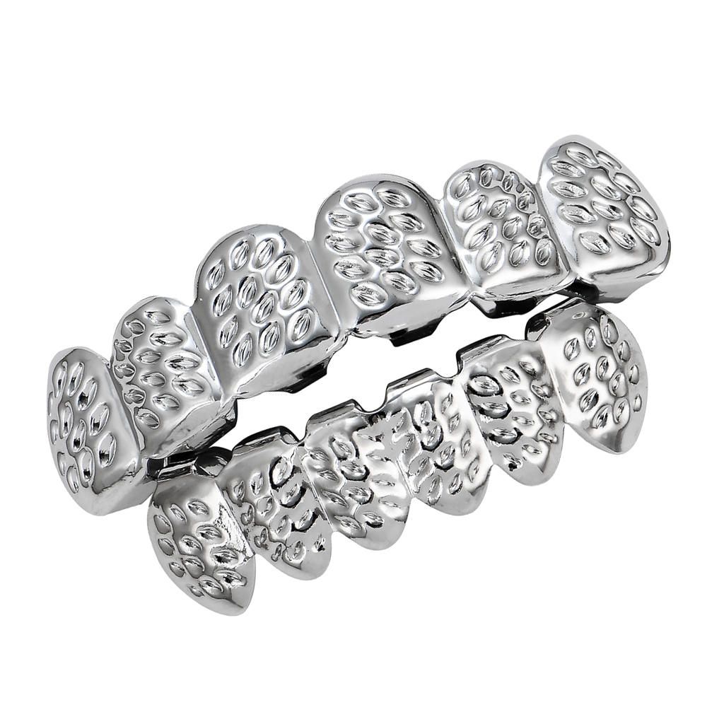 18K Hip Hop Golden/Silver/Rose Gold/Black Teeth Top & Bottom Grills Dental Mouth Punk Teeth Caps Cosplay Party Tooth Rapper Body Jewelry for Women Men.Material: environmental protection quality copper, fixed teething .Size: approx. Top Grills: 5x1.4 cm/2x0.6 inch; Bottom Grills: 4x1.1 cm/1.6x0.4 inch.Hip hop dazzling dental grills are an excellent accessory to hip hop fashion collocation. Most people wear with other jewelry to get a shine and personalized.Can be used for Halloween costume, costume party, music concert and birthday party etc. Wear it for a photo shoot, video shoot, to the , or just for everyday use.
