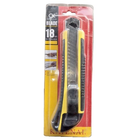 This snap off cutter knife with spare blades is useful for cutting various products. The blade is very sharp, rust free and also retractable with plastic grip and power locking system. The blade is made from steel for sharp and long cutting which makes it a great for fast-production cutting, where quick blade replacement can save valuable time and money. It is a cutter knife ideal for thicker cuts and can also be used for commercial or industrial purpose like cutting thick paper, cardboard, balsa wood, photos, coupons, card stocks, mat board, foam board, delicate fabrics, art work etc.Blade sections snap-off provides the user with fresh sharp cutting points.Designed for both left and right-handed users Ideal for craft hobbyists and artists, office or home use, suitable for photo, paper, cardboard, fabric, plastic, sheet etc.18mm Craft cutter makes cutting convenient. Great for cutting papers, wallpapers, cardboard, vinyl, tapes, leather, flowers, rubber etc.Economical and disposable box cutting blades- blade width is 18mm.