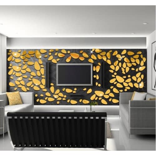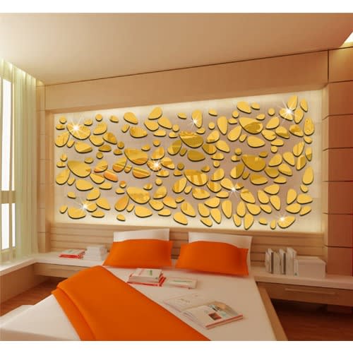 Buy 18pcs 3d Large Size Cobblestone Mirror Wall Stickers- Gold in Nigeria