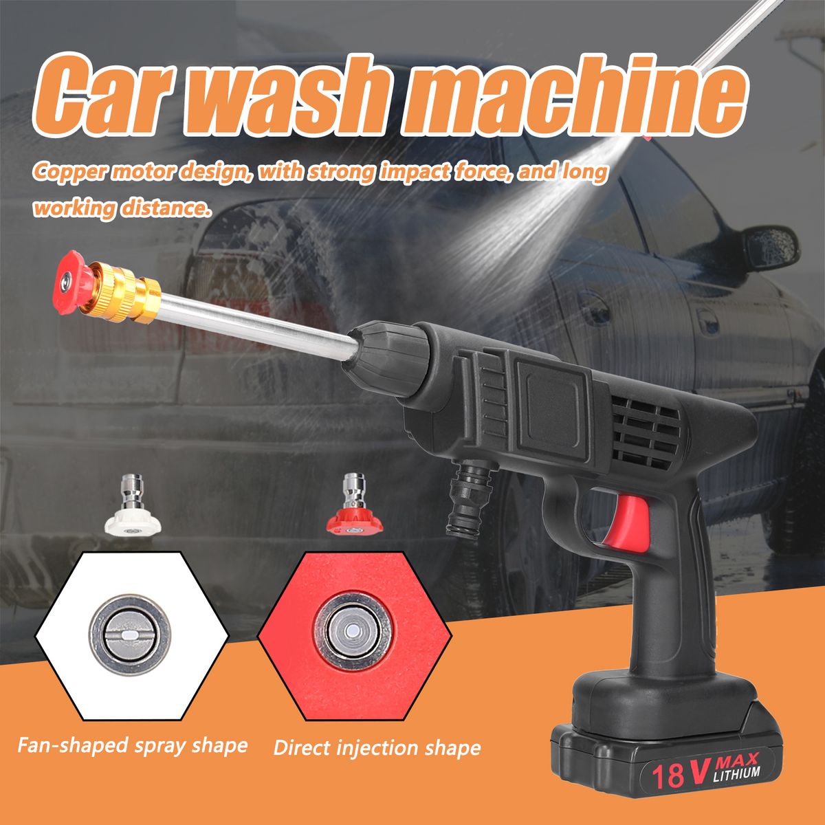 Large water-outlet design, comes with two kinds of nozzles with two different water spout shapes, high-pressure direct injection, fan-shaped spraying, and the nozzles can be changed freely according to your demands easily.