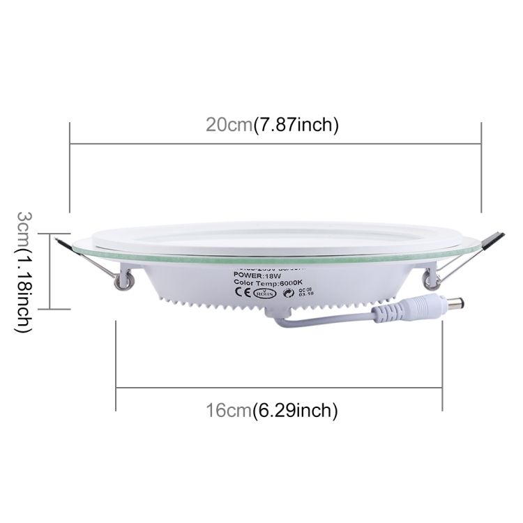 18W 20cm Round Glass Panel Light Lamp with LED Driver