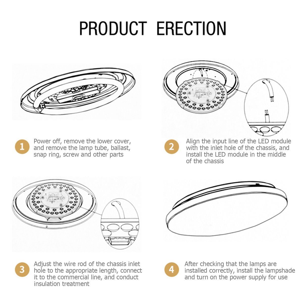 LED light source module provides a large of uniform light, no flicker, no glare, protecting your eyes.