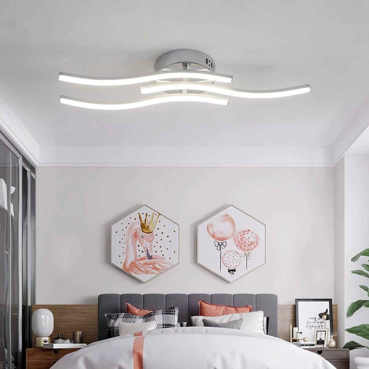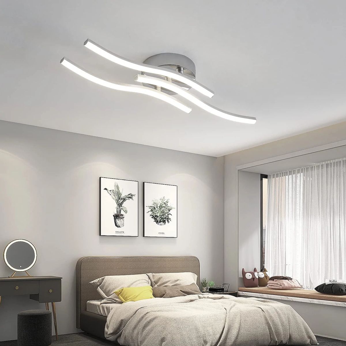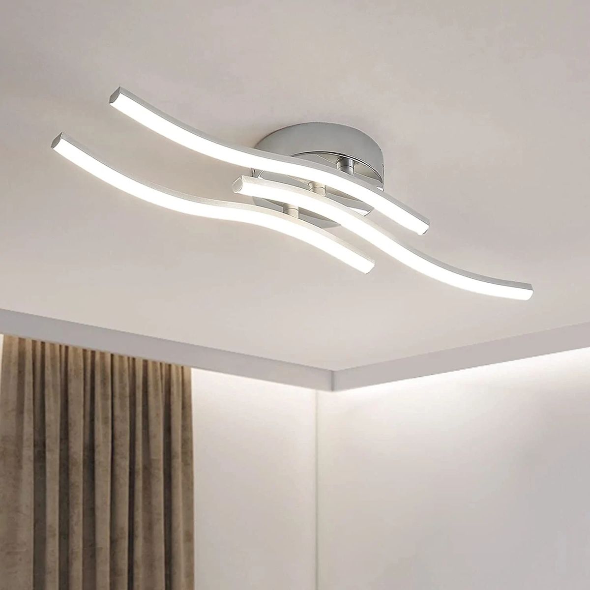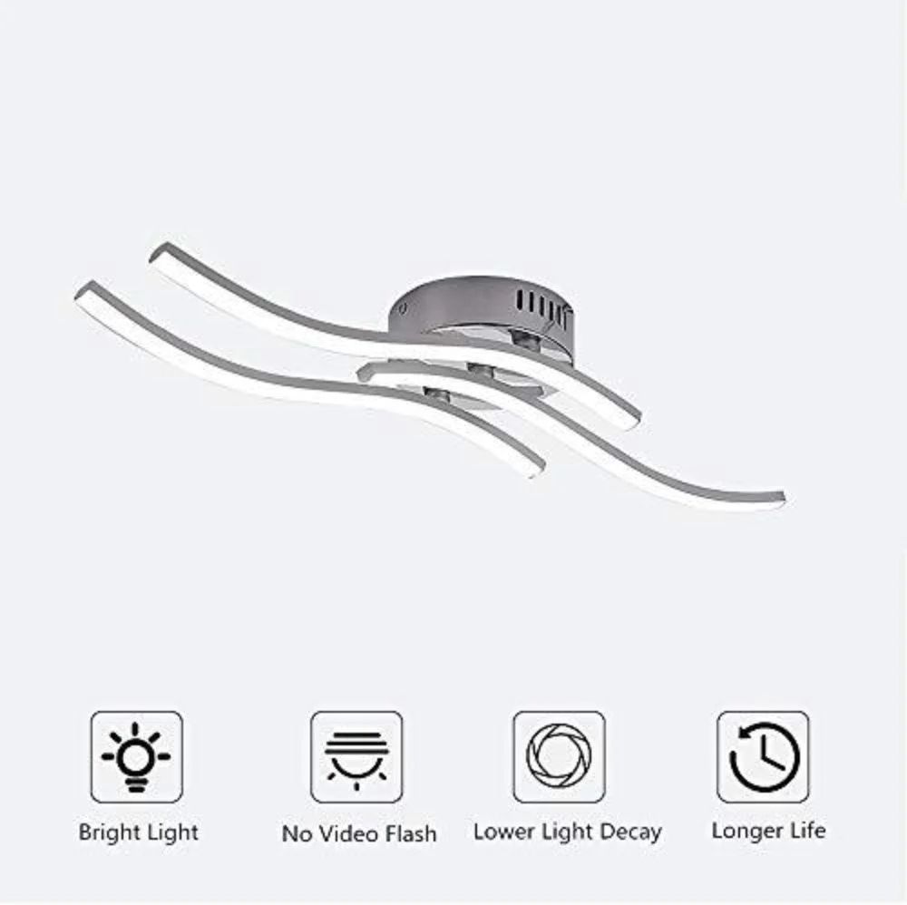 Modern 3 wave ceiling light with elegant curved designCompared to traditional incandescent bulbs, LED bulbs are brighter and use less energy (50% energy saving than CFL bulbs)Features :Type: Modern curved design LED ceiling light. Material: aluminum, plastic. Voltage: 220 V 18 W LED modules. Lighting color: Neutral light. Color temperature: