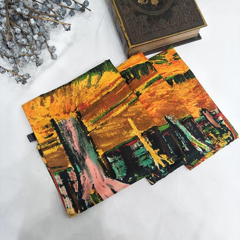Buy 19 Summer New Silk Scarf Women's 130cm Twill Silk Artificial Silk Sunscreen Shawl European and American Oil Painting Jungle Square Scarf in Nigeria
