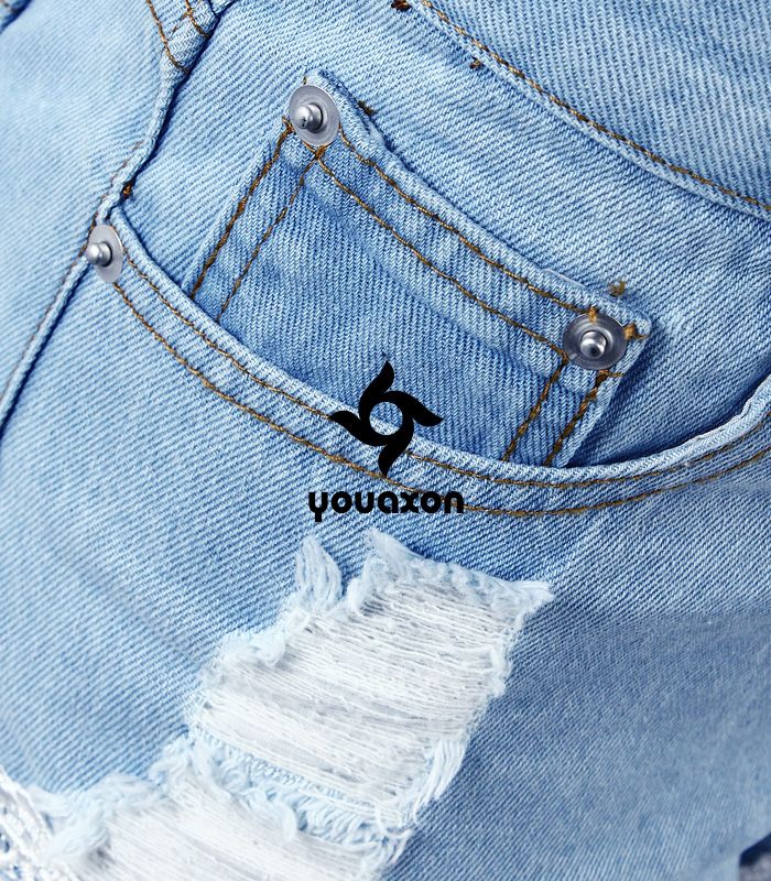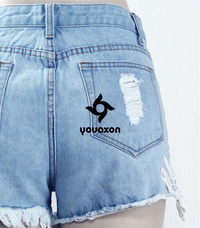 1996 Youaxon Women`s Fashion Summer Hot Style High Waist Lace Floral Ripped Short Denim Shorts For Woman