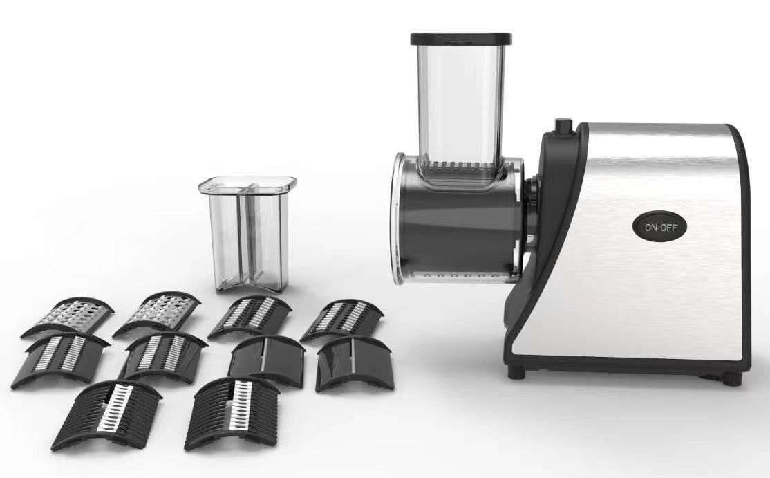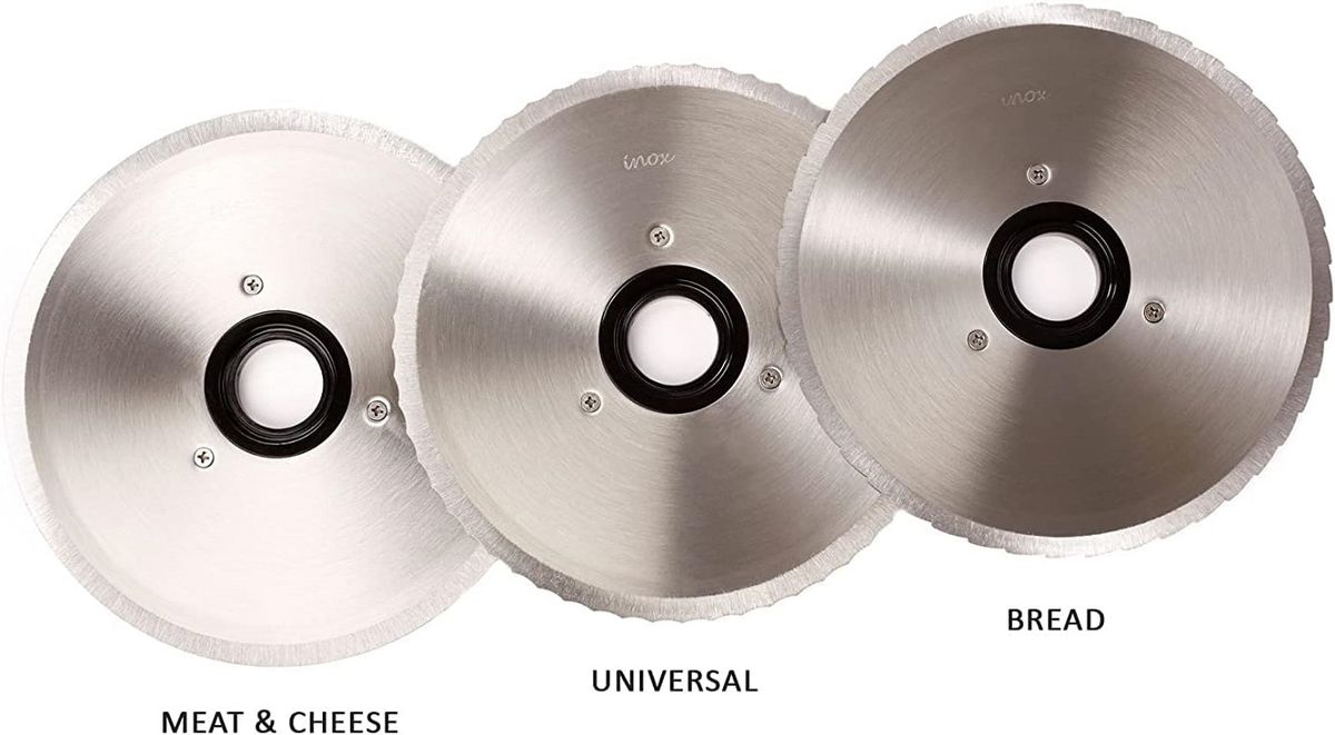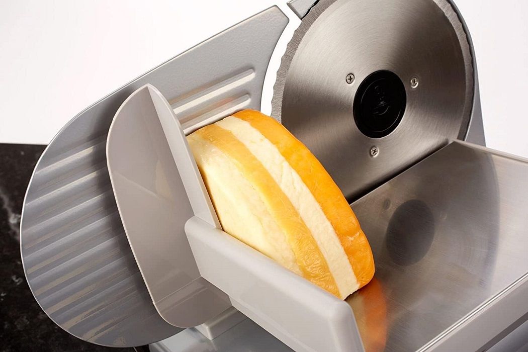 Your food slicer comes equipped with a powerful 150 watt motor but benefits from quiet running. The blades spin at a consistent, steady speed to allow for easy cutting. You don't need to apply lots of pressure to the food press - just hold the food steady and glide the carriage across the blades for even slices.