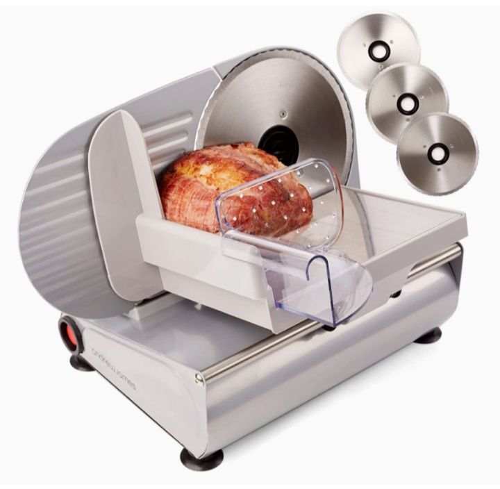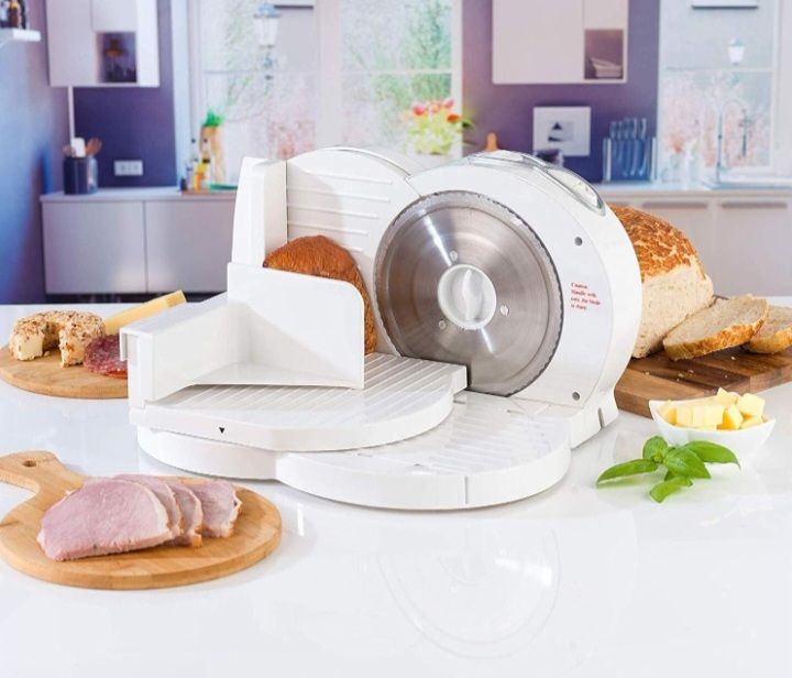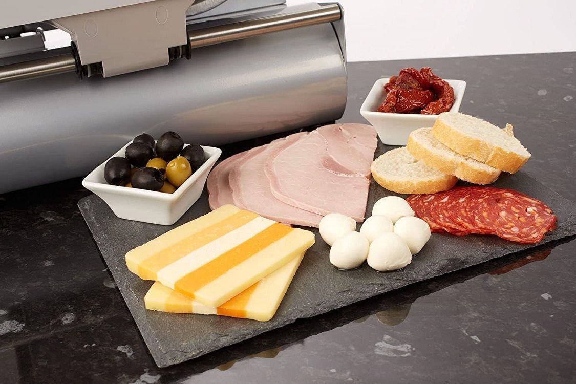 This handy meat slicer looks just like the ones in the butcher's yet has been designed to be compact enough for home use in the kitchen. If you want to make the most of the food you cook this is the machine for you. Take your leftover roasts and slice them up for lunch box sandwiches, cut equal slices of homemade bread or lay out a delicious platter of meats and cheeses when entertaining guests.