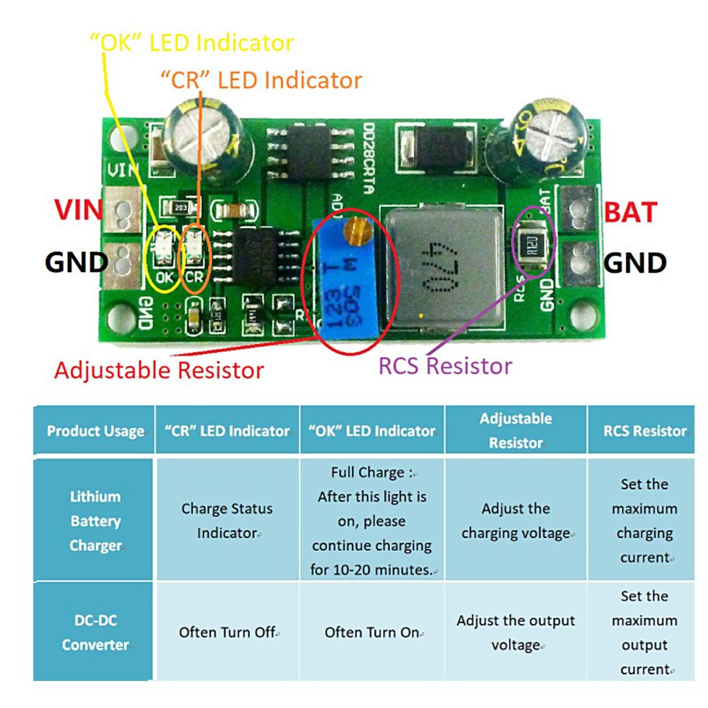 Input DC6.6-25V, Output DC1.2-23V adjustable(4.2V 4.3V 4.35V 8.4V 12.6V 16.8V 21V)