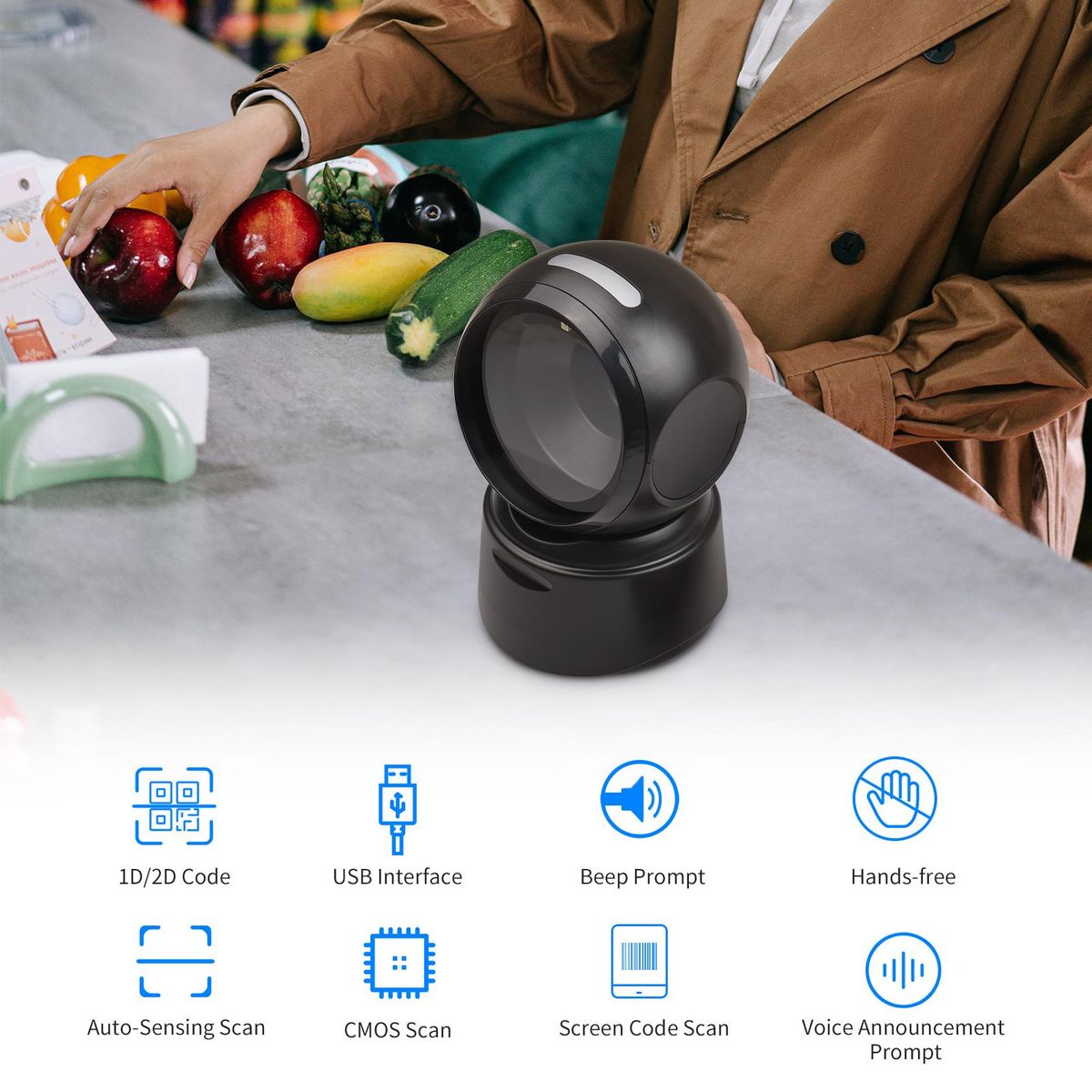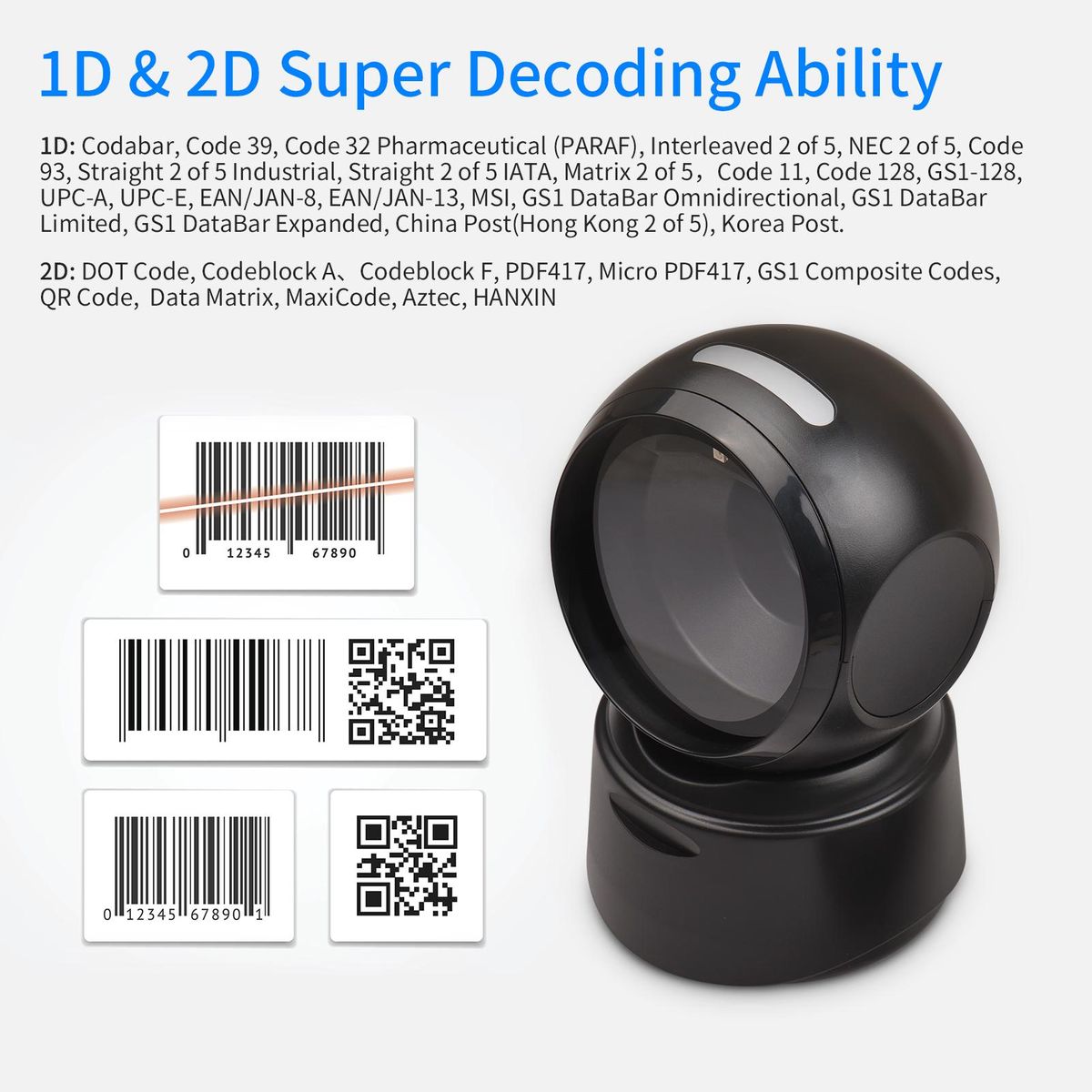 Buy 1D 2D QR Desktop Wired Barcode Scanner Platform Hands-Free Automatic Sense Reader USB RS232 Serial Port Plug&Play Compatible with Window Android System Image CMOS Sensor Suitable for Supermarket Retail Shop Grocery Store Warehouse in Nigeria
