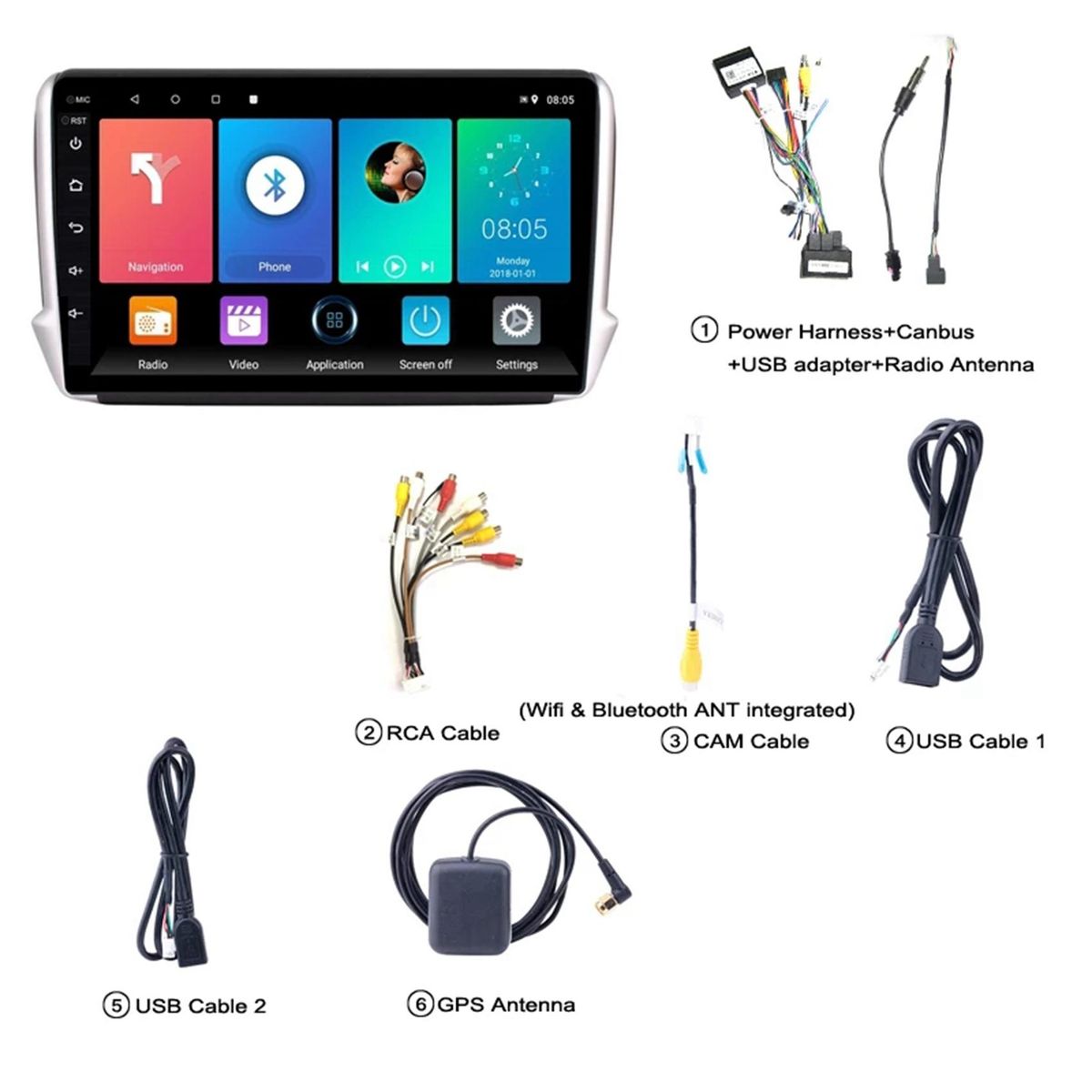 1G+16G 2Din Car DVD Radio Android 10 Car Radio Multimedia Video Player For Peugeot 2008 208 2012-2018