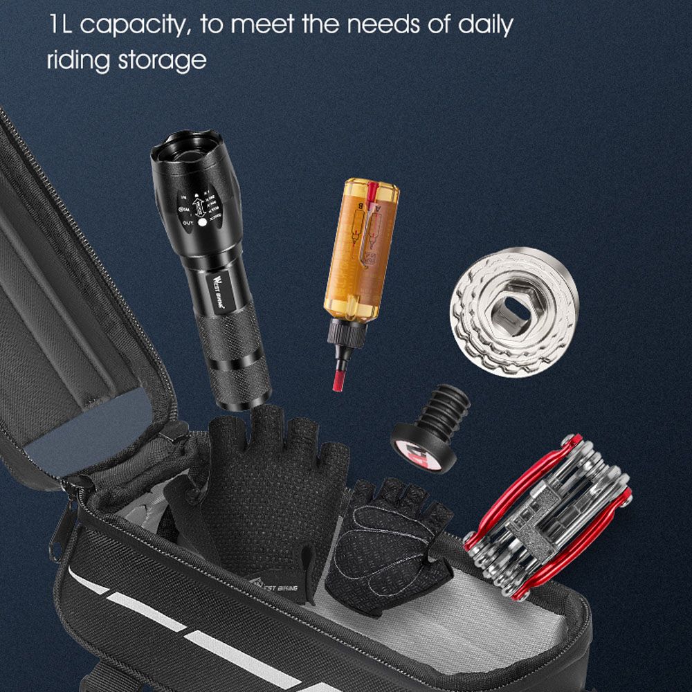 The bike bag has enough space for the necessary items such as smartphone, keys, glasses, bike repairing tools, earphone and more into this bag.